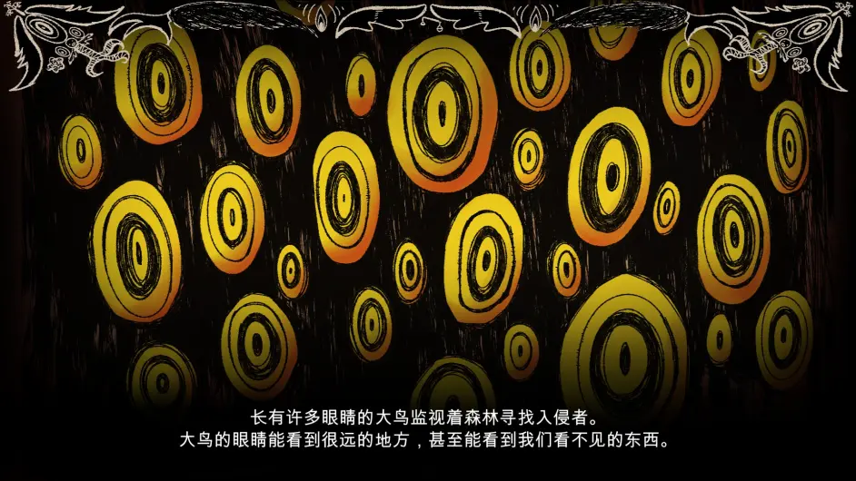 長有許多眼睛的大鳥監視著森林尋找入侵者。大鳥的眼睛能看到很遠的地方,甚至能看到我們看不見的東西。