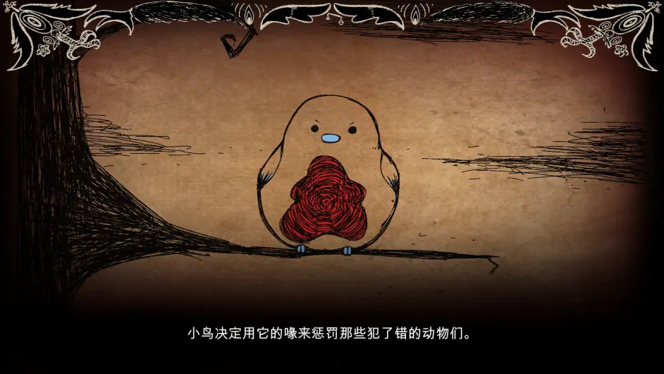 當“懲戒鳥”進入異想體“黑森林的入口”時,將會出現寫有“小鳥決定用它的喙來懲罰那些犯了錯的動物們。”的 CG。