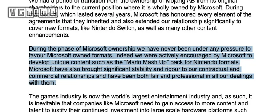 在這段持續了幾年的(合作)時間裡,微軟履行了他們提出的所有承諾,並大幅擴充套件了我們的關係,涵蓋了像任天堂 Switch 這樣的新平臺,還包括許多其他的內容增強。