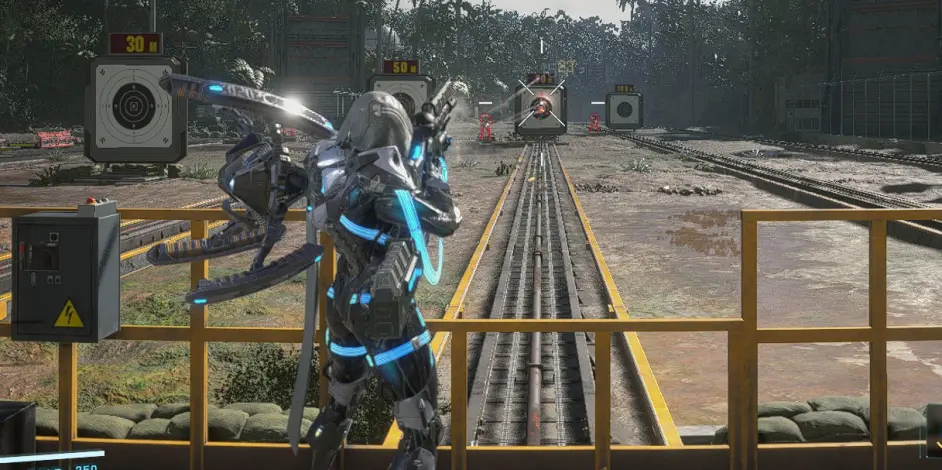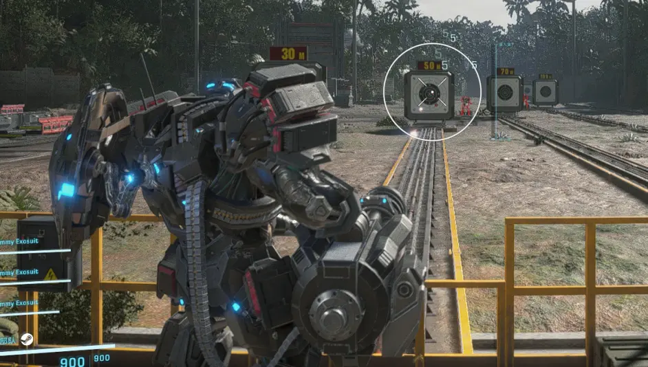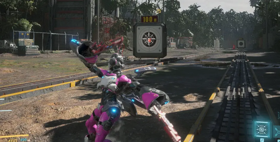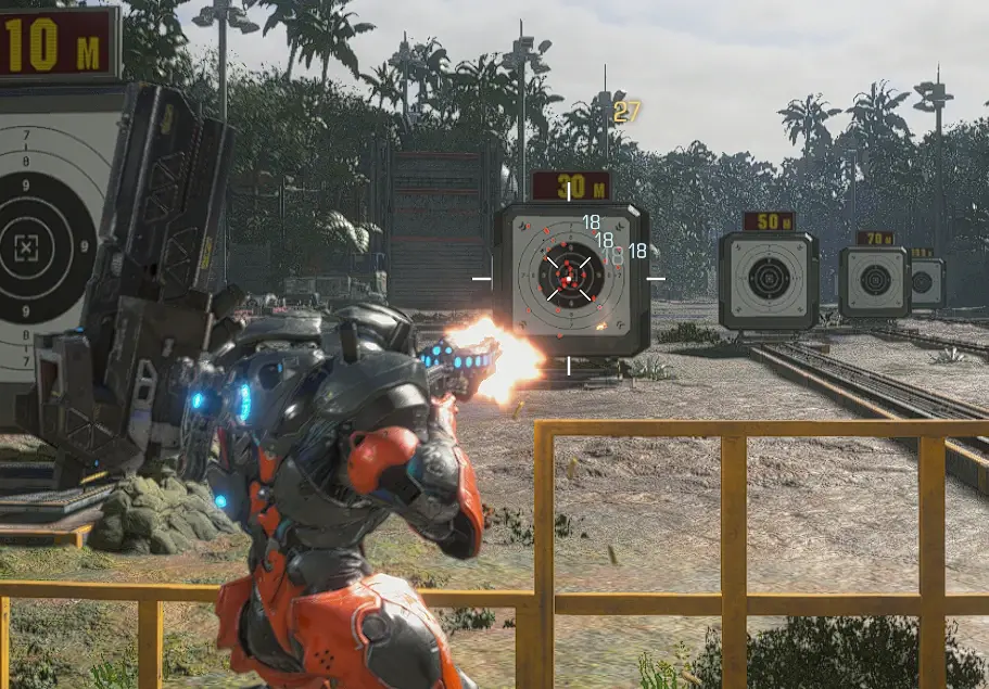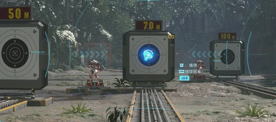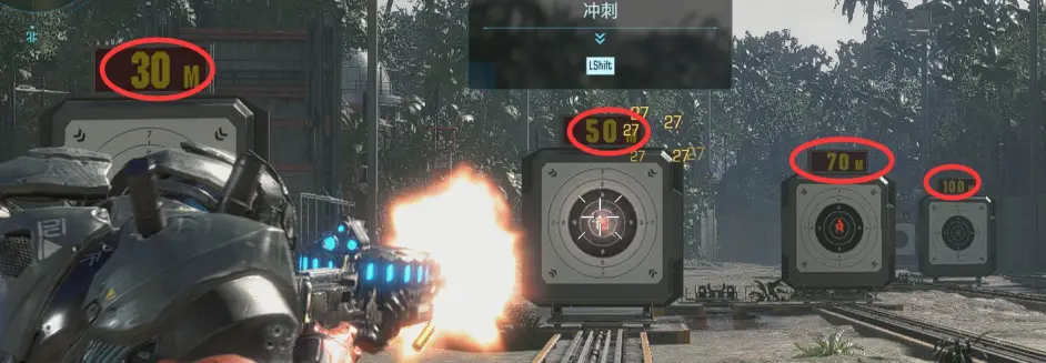 遊戲中的武器會根據射程衰減傷害,比如訓練場第一把武器,最大傷害半徑就是50米,50米外開始衰減,50~100米衰減至最低