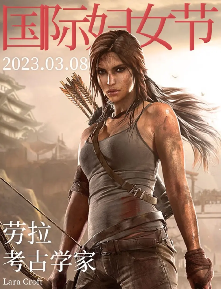 官方還附上了四個知名的女性遊戲角色的賀圖,包括芙蕾雅《戰神》、蒂法《最終幻想7》、勞拉《古墓麗影》、希裡《巫師3》。