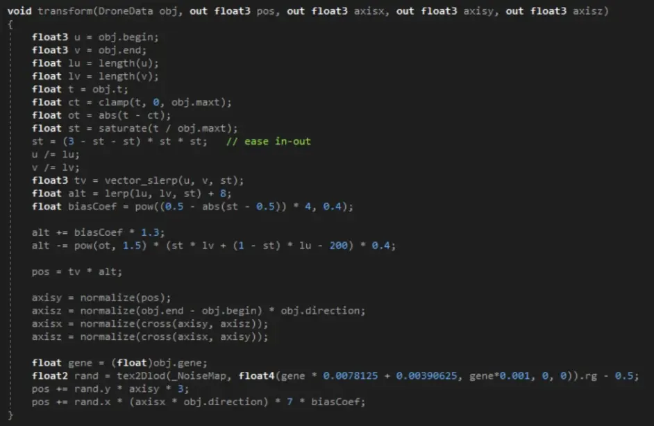 就像物流運輸機的優化那樣,CPU根本不用計算運輸機從A點(xA,yA,zA)出發,到達B點(xB,yB,zB)卸貨,中間經過的這條弧線,以及機身旋轉、上升下降的過程、尾焰特效如何變化等等,CPU要做的僅僅就是累加一個t值。