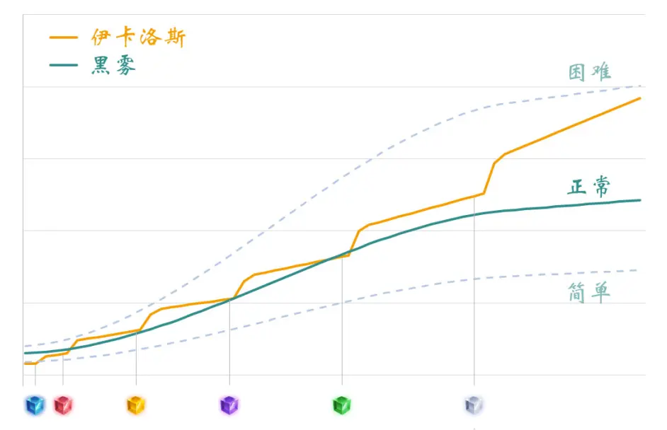 在戴森球計劃中,玩家的工廠物件規模動不動就上十萬百萬,效能無疑是需要重視的。而一個遊戲的效能最終上限是從策劃設計時就定下了,然後再是靠程式的技術水平去努力達到它。所以我們要求策劃在設計時就利用好這些僅存的效能空間來實現儘可能多的可能性。在經歷了一次玩法驗證之後,我們給出了一個設計目標,下圖展示了在設想中玩家通關前和黑霧的戰鬥力對比。