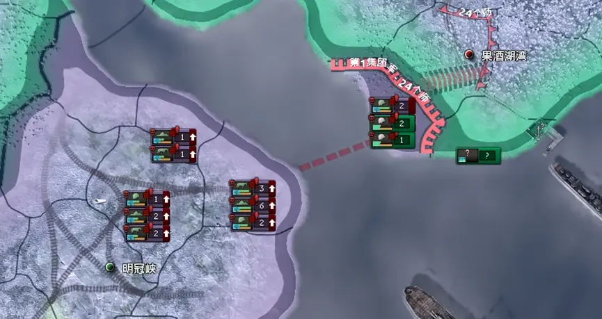 古恩希爾德領部隊被消滅後,在東北方海峽繼續修鐵路、誘敵深入,一網打盡。