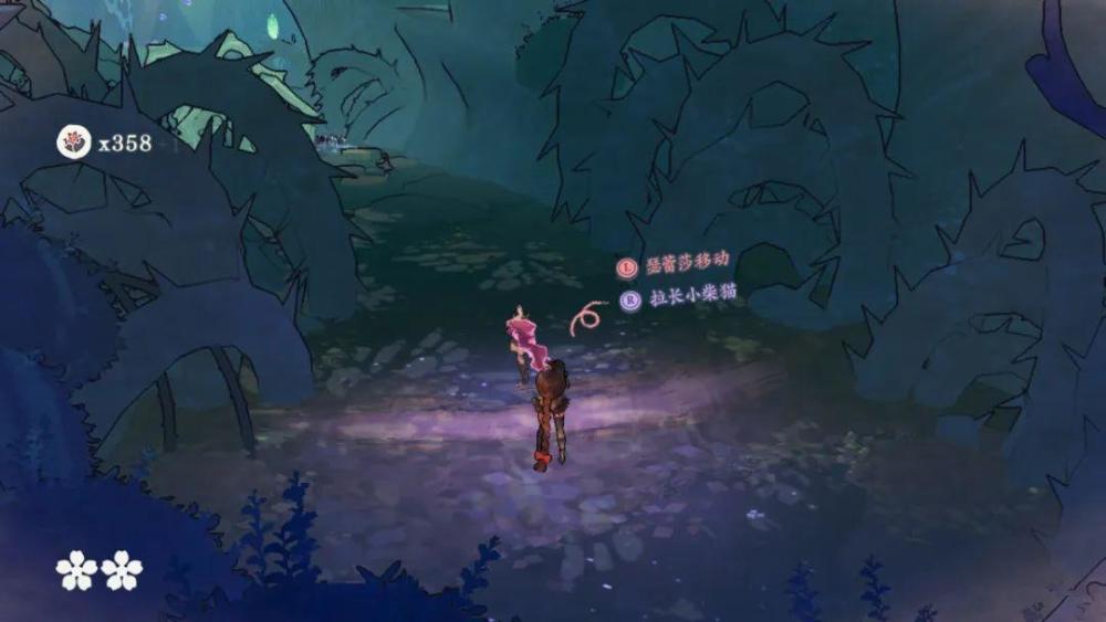 等到小柴貓登場之後,才發覺右搖桿和R、ZR鍵是給惡魔準備的,竟然可以操作兩人同時行動,瑟雷莎放出荊棘困住敵人,小柴貓上前一頓老拳,配合得緊密無間。