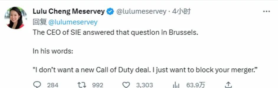此前索尼就曾表示如果微軟和動視合併,將會大大降低PS和Xbox間的競爭,併為微軟提供機會提高Xbox使用者(包括PS轉Xbox的使用者)的主機和遊戲價格,提高遊戲通行證的價格,減少創新和遊戲質量等。