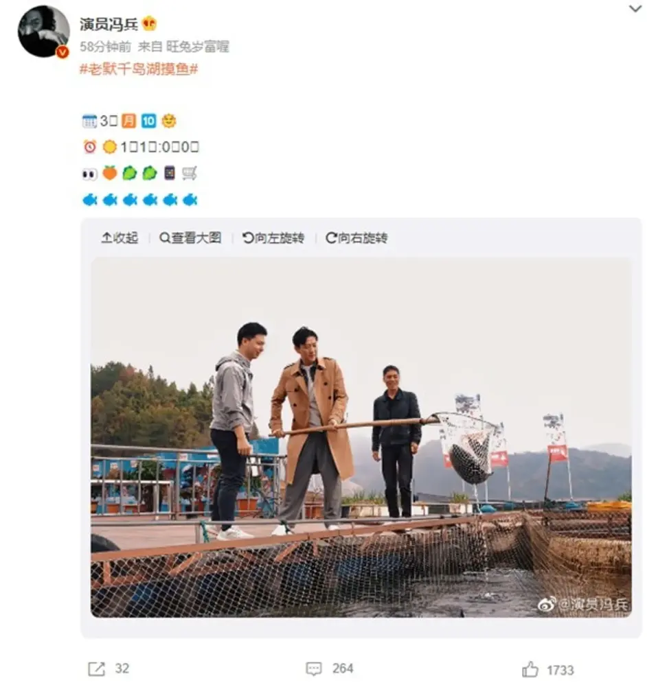 對此,扮演者馮兵在微博更新動態,配圖證實了自己撈魚非假。配文是一段emoji表情,網友很快“破譯”得出“3.10中午11:00,看淘菜菜手機購物,默哥直播?”