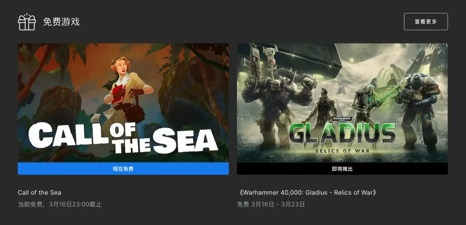 3月9日Epic喜+1:冒險解謎《海之呼喚》 下週送《戰錘40K:角鬥士之戰爭聖器》Epic喜加一今日繼續,本週送出第一人稱冒險解謎遊戲《海之呼喚》,下週送策略遊戲《戰錘40K:角鬥士之戰爭聖器》。