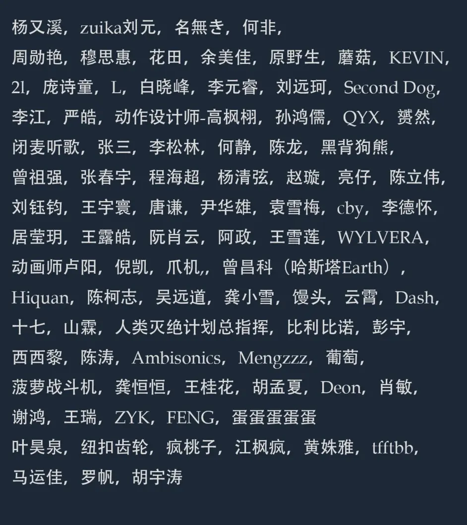 經各位小夥伴同意,我們下面放出製作人員名單,希望各位夥伴前程似錦!