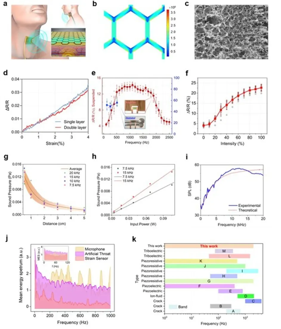 據瞭解,同商業麥克風和壓電薄膜相比,人工喉對低頻的肌肉運動、中頻食管振動和高頻聲波資訊有很高的靈敏度。同時也具有抗噪聲的語音感知能力,對聲學訊號和機械運動的混合模態的感知使人工喉能夠獲得更低的語音基頻訊號。