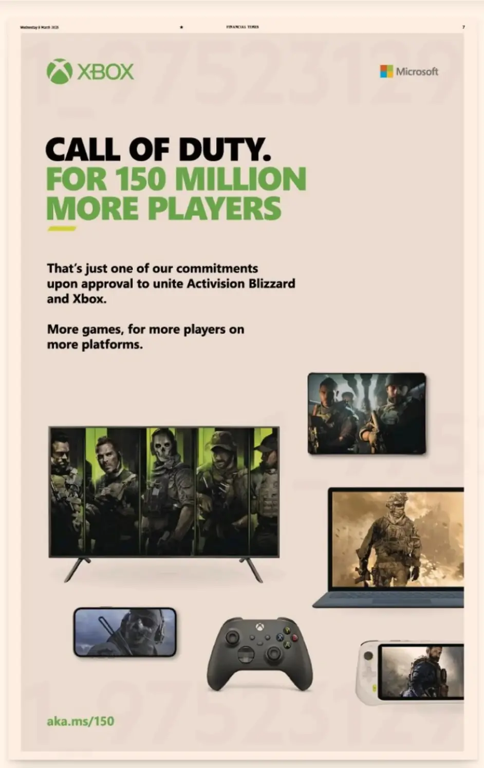 微軟在英國報紙打出整版廣告 宣傳其動視收購案據theverge訊息,微軟今日在《金融時報》和《每日郵報》上投放了整版廣告,以推動其和動視暴雪的交易在CMA獲得批准。