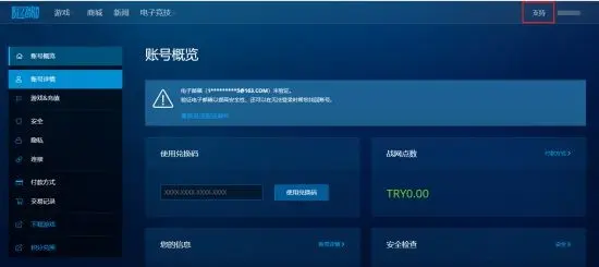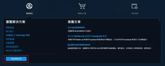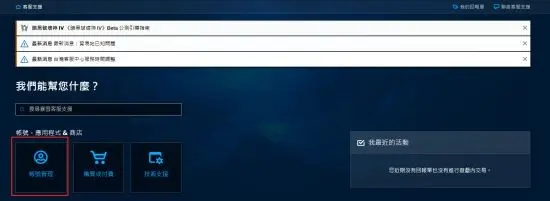 五、在【賬號管理】的頁面裡,點選【聯絡客戶支援】,這一步一定要使用泡泡加速器加速,不然半天都很難載入出來。