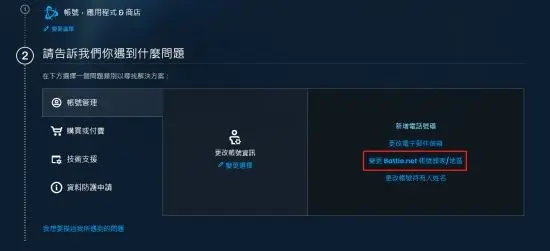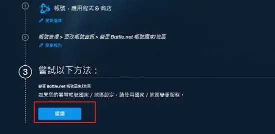 七、在【更改賬號資訊】的頁面裡,點選【變更暴雪賬號國家/地區】,點選【繼續】