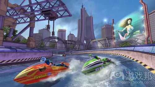 360平臺的Hydro Thunder引擎所表現出來的概念畫面,此時還未移植Android平臺(from gamasutra)4、專注
