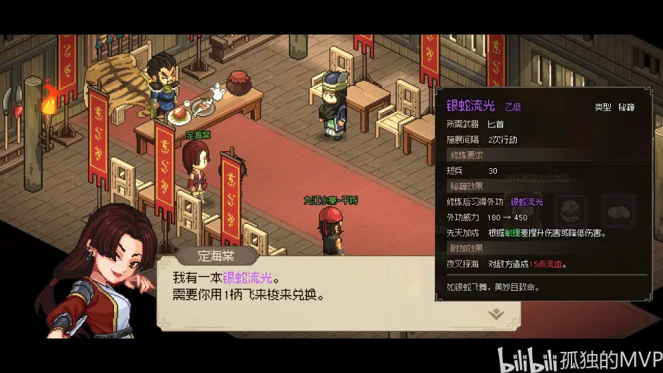 1、吳越地區前往霖安城,前往城內開化塔,達到開化塔二層時觸發劇情,選擇靜觀其變後與服部兵衛開戰,角色直接撤退(要求角色集氣速度>87)2、前往無名地區琳琅館,找館主調解與蚍蜉城仇恨(提前準備好金元寶、碎銀)3、再次前往霖安城的開化塔二層,跟服部兵衛關係達到親密(40),請教即可獲得(需要甲級武器魚腸劍1把)
