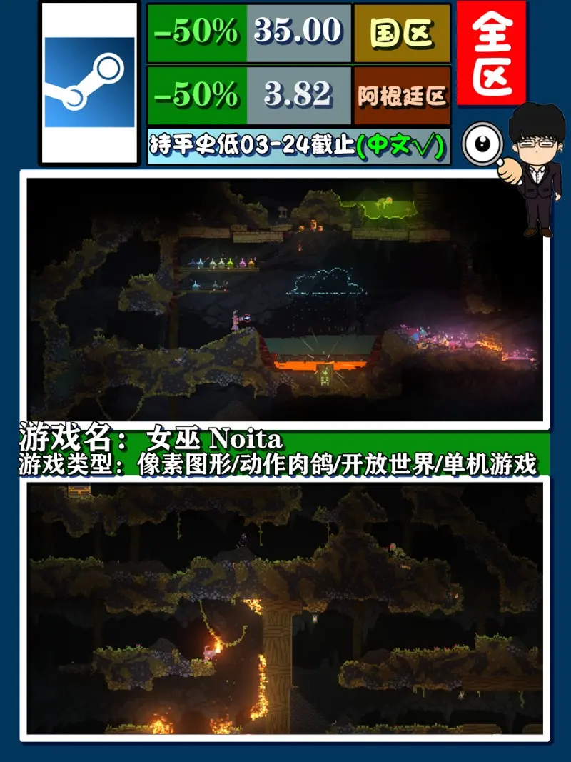 遊戲型別:畫素圖形/動作肉鴿/開放世界/單機遊戲