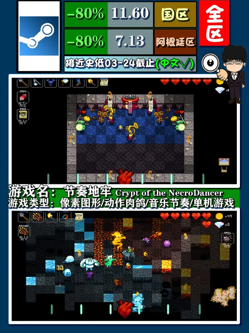 遊戲型別:畫素圖形/動作肉鴿/音樂節奏/單機遊戲