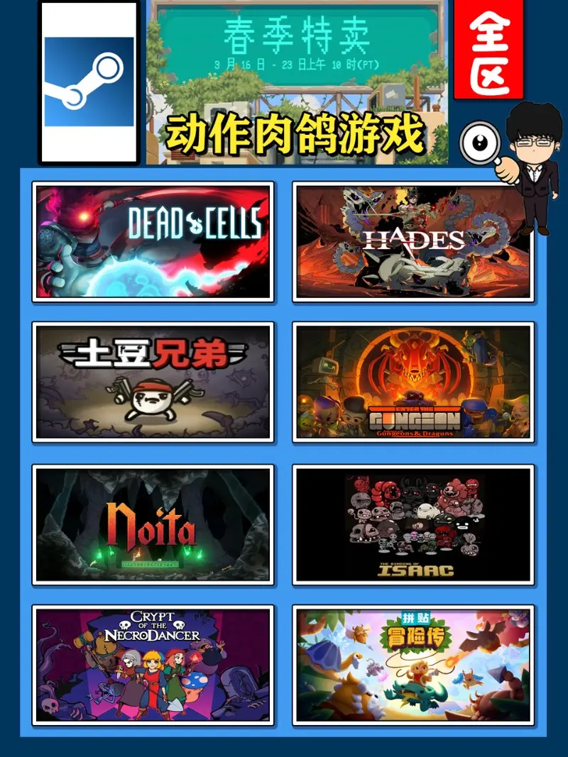 春季特賣選擇多,老基德來解你惑!此次steam春季特賣從3月16日持續到3月23日,老基德依舊老規矩給大家做好分類推薦,大家可以按照自己喜好對號入座,本期內容為動作肉鴿,下期為卡牌策略,不要錯過!