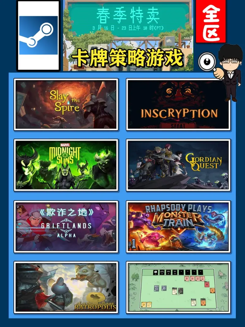 春季特賣選擇多,老基德來解你惑!此次steam春季特賣從3月16日持續到3月23日,老基德依舊老規矩給大家做好分類推薦,大家可以按照自己喜好對號入座,本期內容為卡牌策略遊戲,下期為模擬經營遊戲,不要錯過!
