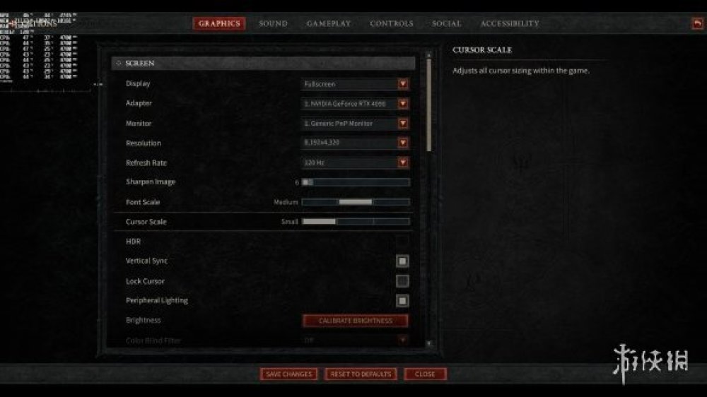 外媒使用的PC配置為i9 9900K/16GB DDR4記憶體(3800Mhz)/RTX4090/Windows 10 64-bit。此次《暗黑4》提供了大量的圖形設定選項供玩家調整,包括紋理品質、陰影效果、SSAO、霧氣效果等等。此外,這次開放Beta測試版的《暗黑4》也支援英偉達的DLSS 2技術。