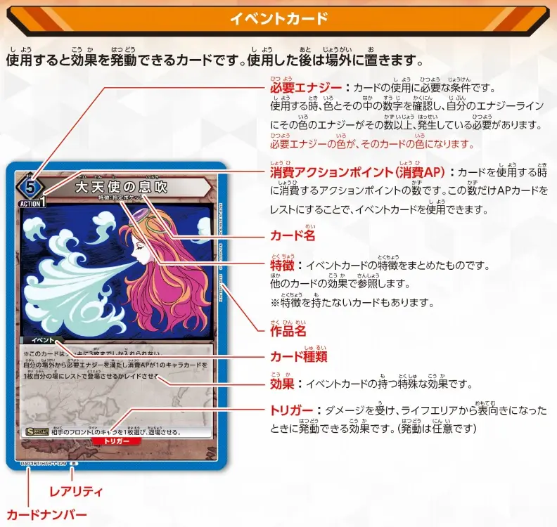 特徵:描述事件卡的特徵。其他卡片的效果有時會參照卡的特徵。