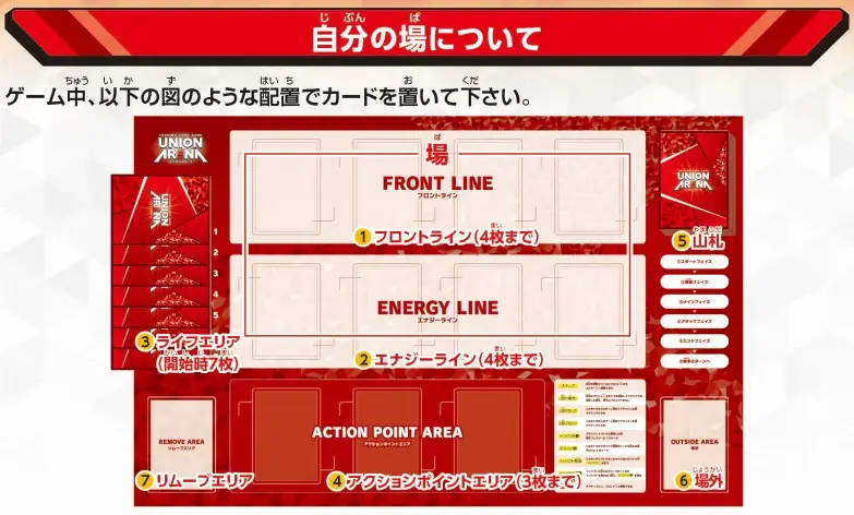 ①FL:放置角色卡的區域。FL的角色可以攻擊和阻擋。最多可以放置4張角色卡。