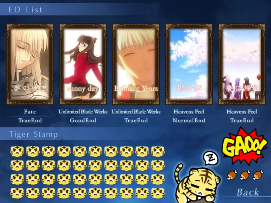 ③Last Episode:通關五個最終結局+40個老虎道場後解鎖,為fate線的後續劇情。