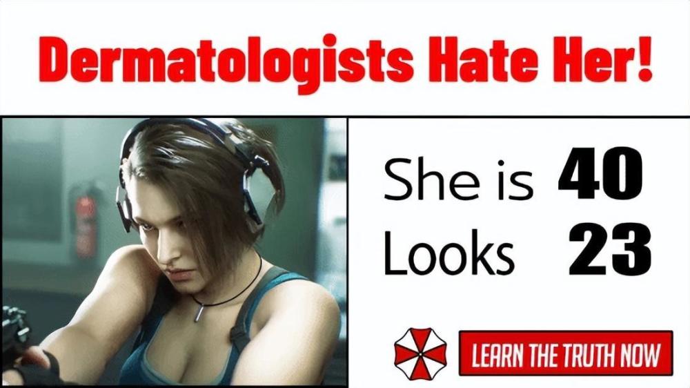 對此Capcom官方說辭是吉爾感染了T病毒,因此減緩了衰老。