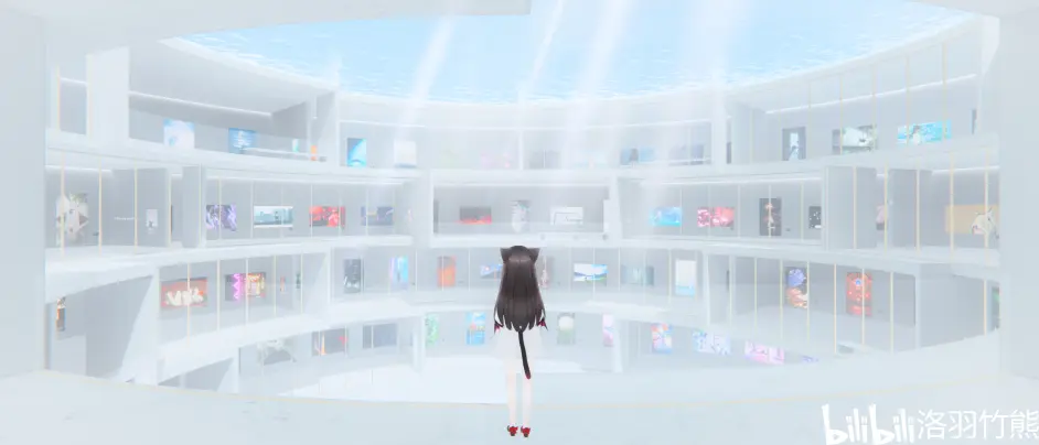 這裡是在VRC裡最有意境的地點之一,這裡收錄了很多VRC虛擬攝影師的作品,可以說每一張都是飽含了時間和精力的。而且這次的展會已經是第二屆了呢,時間可是過得真快呀。上一屆的時候我就是一個人在這裡,這一屆也還是隻能在前面看著呢。