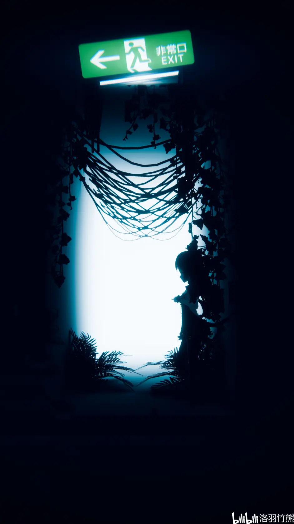 在探索中,我們不知何時進入了這片黑暗的區域,而在眼前有著一處亮著白光的緊急出口,而門邊遺留的刀也代表了, 這裡不單單是一處物理上的出口,他曾是預設內心的出路吧,在黑暗中去迎接光明或許也是需要勇氣的吧。