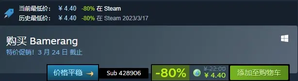 購買地址:https://store.steampowered.com/app/1236490/Bamerang/