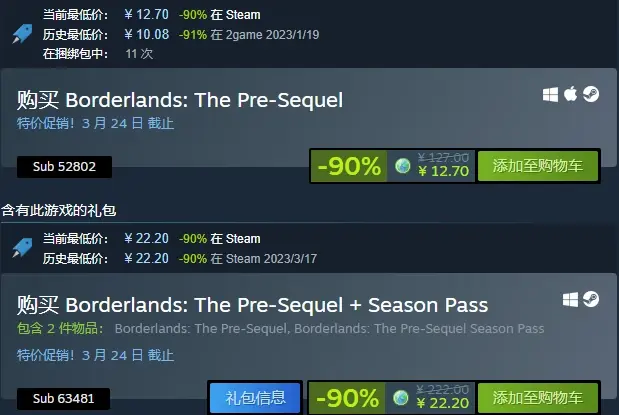 購買地址:https://store.steampowered.com/app/261640/Borderlands_The_PreSequel/