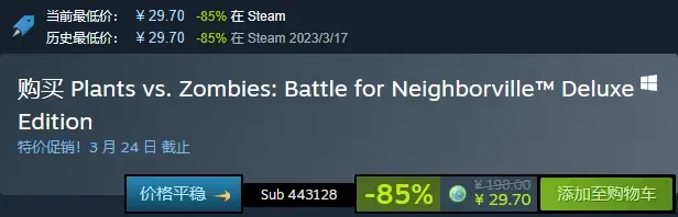 植物大戰殭屍™: 和睦小鎮保衛戰 的 價格購買地址:https://store.steampowered.com/app/1262240/_/