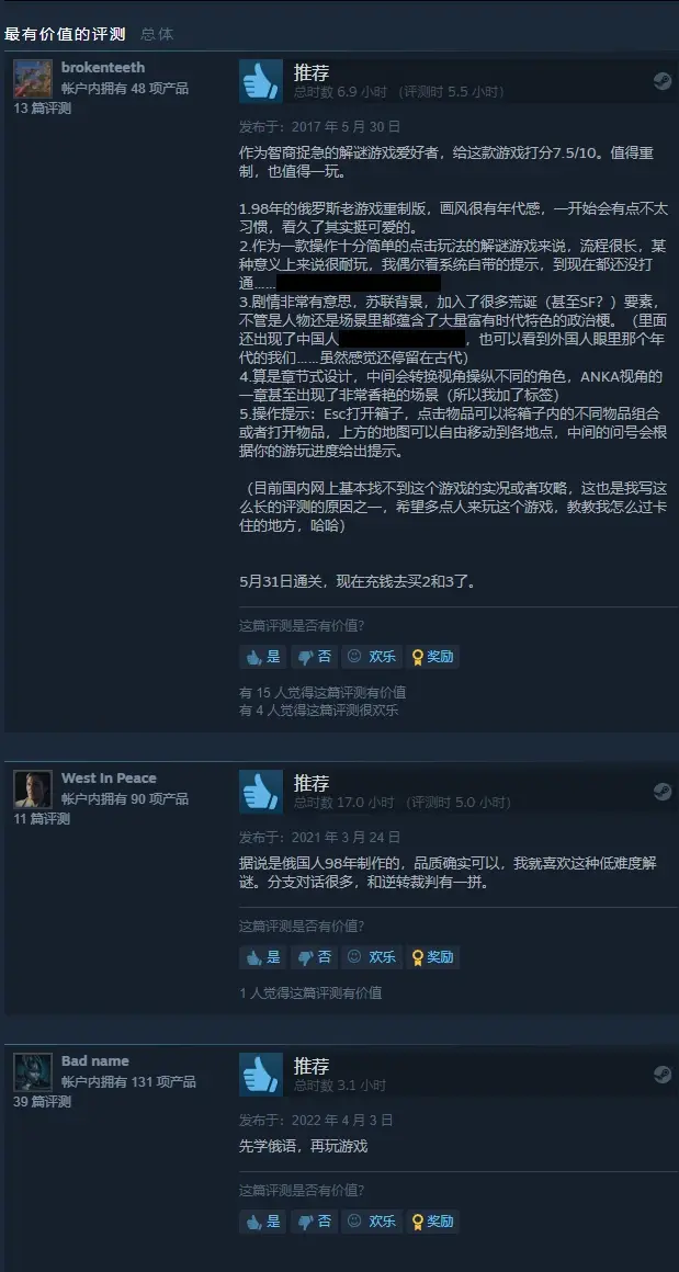 一款俄國人制作的劇情遊戲,有基本的RPG要素,而且劇情精彩。但是由於沒有中文(以及漢化),請謹慎購買。
