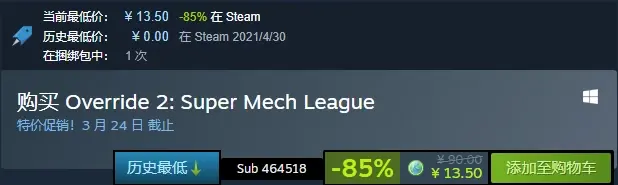 購買地址:https://store.steampowered.com/app/1329790/Override_2_Super_Mech_League/