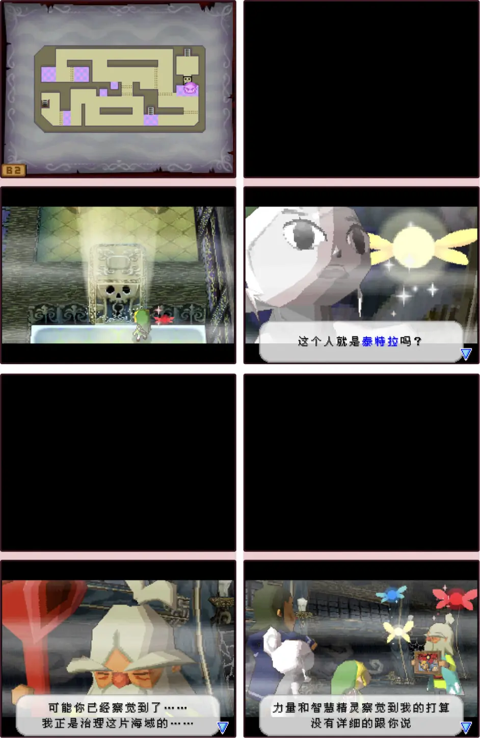 再回海王神殿,繼續和那些夢幻騎士打交道,這次需要通過B4~B6。B6下面的大廳裡面,正對面是一個太陽,上去調查然後要求將地圖上的符號描在自己的地圖上,把DS蓋子合上,再開啟。