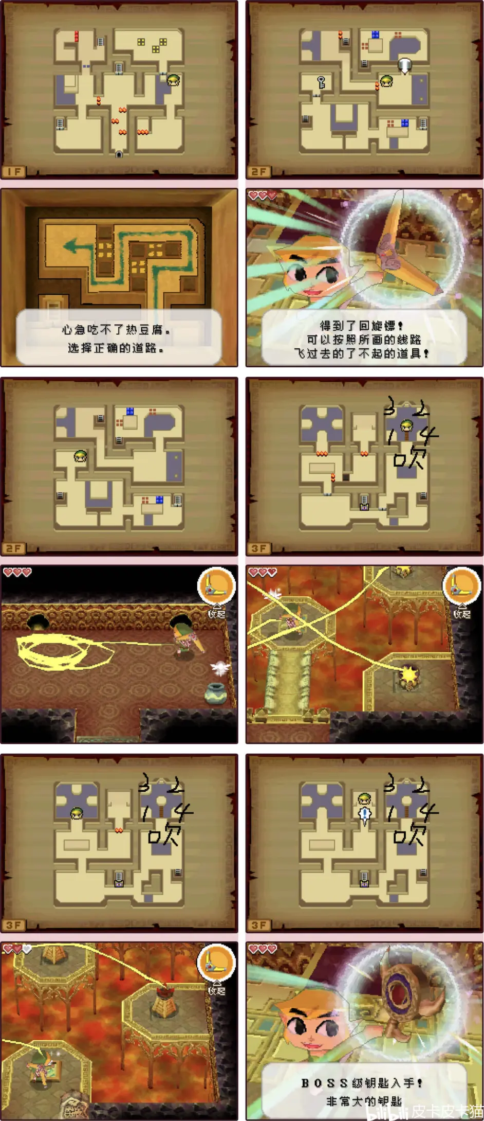 在神殿第二層得到新武器迴旋標,後續的謎題基本上都是吹蠟燭和使用迴旋標,一路解謎獲得boss級鑰匙。