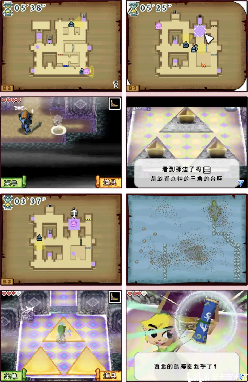 利用沙漏效果和紫色的聖域躲避夢幻騎士,放置眾神三角,開啟大門,拿到西北的航海圖。