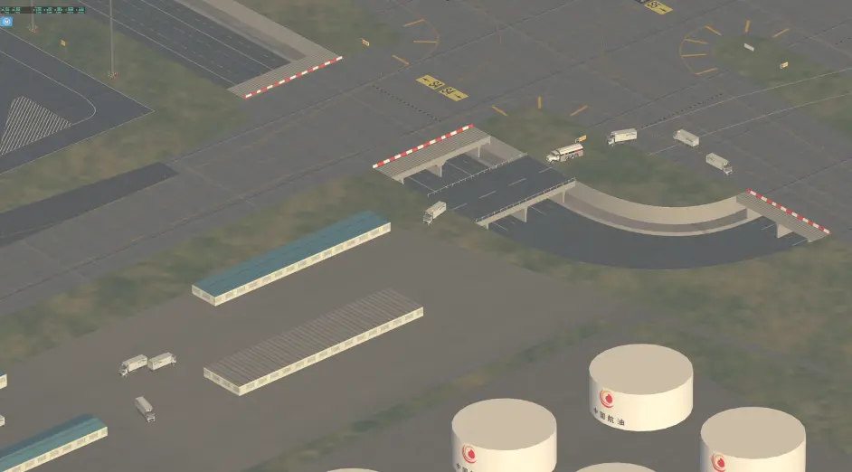 注意看地勤車輛毫無疑問,這個地方又是忘記放置混凝土地面。再看那幾個油罐,多一點細節會死啊,就不能吧邊上的樓梯做出來嗎。。。