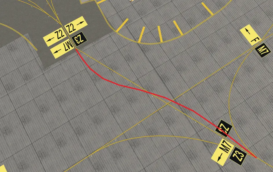 糟糕的貝塞爾曲線這裡應該是沒有控制好弧度,和跑道邊線並不能很好銜接。