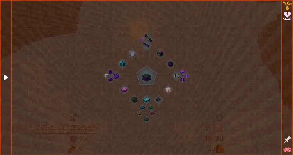 整合包介紹:你出生在只有一個區塊可以活動的空間裡,想要擁有更大的空間只能製作壓縮空間。該整合包有一定量的魔改,前期使用神祕農業獲取各種礦物,後期使用作者自定義機器來獲取礦物以及一些不易獲得的物品,最終做出創造物品和象徵完結的獎盃