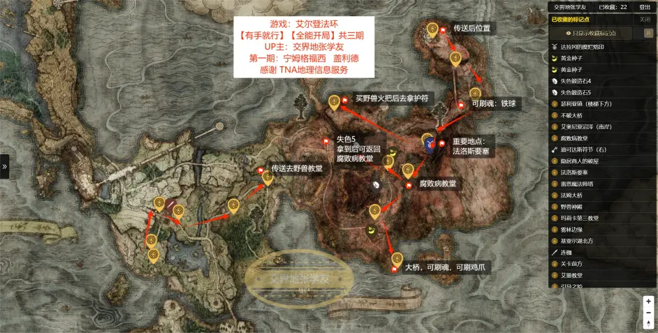 有褪色者們私信我說為什麼要跑圖這麼麻煩,阿撲主規劃的這個跑圖路線是方便獲取前中期的資源以及開通重要賜福點,方便後續拿武器,拿道具,打BOSS。