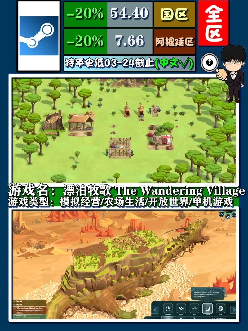 《漂泊牧歌》,這款剛上線在steam平臺的時候老基德就已經關注了,可以說是別出心裁的一款遊戲,除了常規模擬經營類玩法,基地搭建,管理人員等內容外,還要與巨獸共存,注意外界環境變化等種種影響,就目前來看,遊戲可玩內容不夠強大,但畢竟是去年後半年剛上線的新遊,加上近期遊戲公告上官方的一些新訊息看,對於遊戲內容上的缺陷官方自身還是非常清楚的,老基德個人覺得未來可期