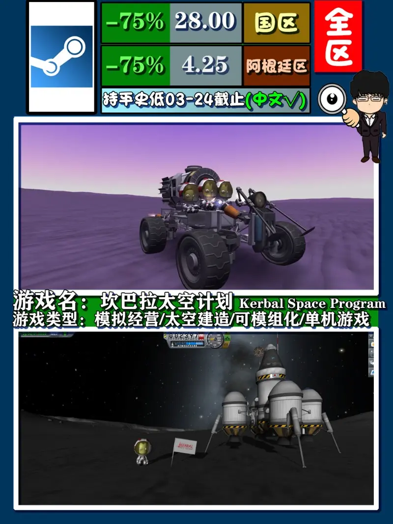《坎巴拉太空計劃》,二不太行,一猶未盡,除了啟動器讓人有點反感外,這款遊戲可以說是全方位無死角的優秀,因為玩過它的文科生知道了地球的安全性,深入玩過的理科生知道了自己的使命,沒錯,擴充套件性如此之強的這款遊戲肯定會讓你停不下來,不過說實話,新作的表現不令人滿意,那作為這款遊戲的忠實玩家來說,老基德更推薦先玩開心了一,等官方把二再優化優化再,再試著看要不要回頭吧