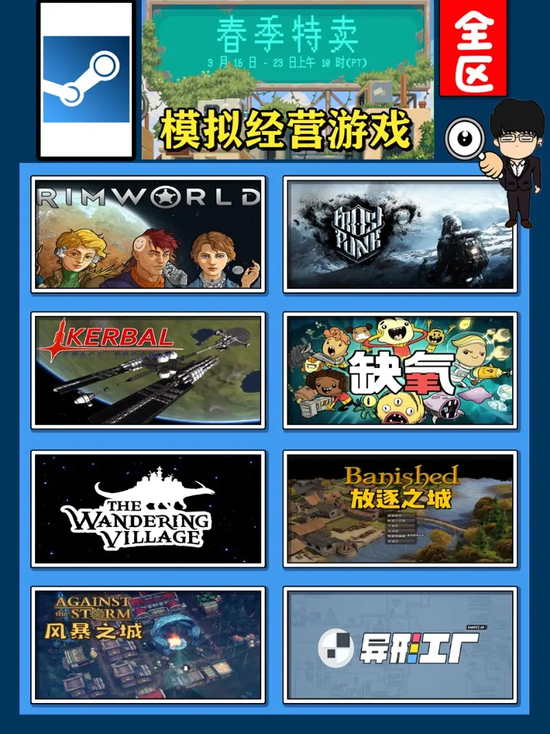 春季特賣選擇多,老基德來解你惑!此次steam春季特賣從3月16日持續到3月23日,老基德依舊老規矩給大家做好分類推薦,大家可以按照自己喜好對號入座,本期內容為模擬經營遊戲,下期為聯機推薦遊戲,不要錯過!