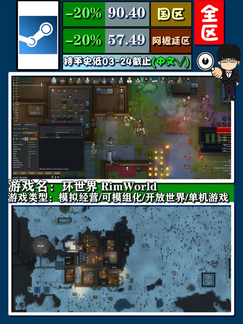 《環世界》,想必模擬經營遊戲裡面,它算是標杆之一,基地建設玩法層出不窮,低配輕鬆隨意玩,豐富模組新鮮感,生存科幻略顯難,殖民吃喝靠你盤,從去年冬季特賣進入新史低後打折價位總算是持續穩定起來,相對去年錯過的等等黨們,此時不出手等待何時?