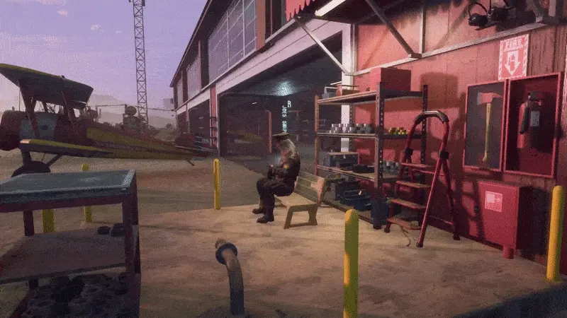 在我們之前的開發日誌中,我們曾經提到,《小機場》DLC擁有自己獨特的任務需要去完成。正因如此,我們覺得需要在遊戲中加入一個全新的角色,他既與DLC的內容強相關,又和《加油站大亨》故事所發生的區域有所聯絡。於是我們就創造了喬——一個美國空軍飛行員,一名老兵,由於過去的經歷,他正飽受創傷後應急障礙(PTSD)的折磨。
