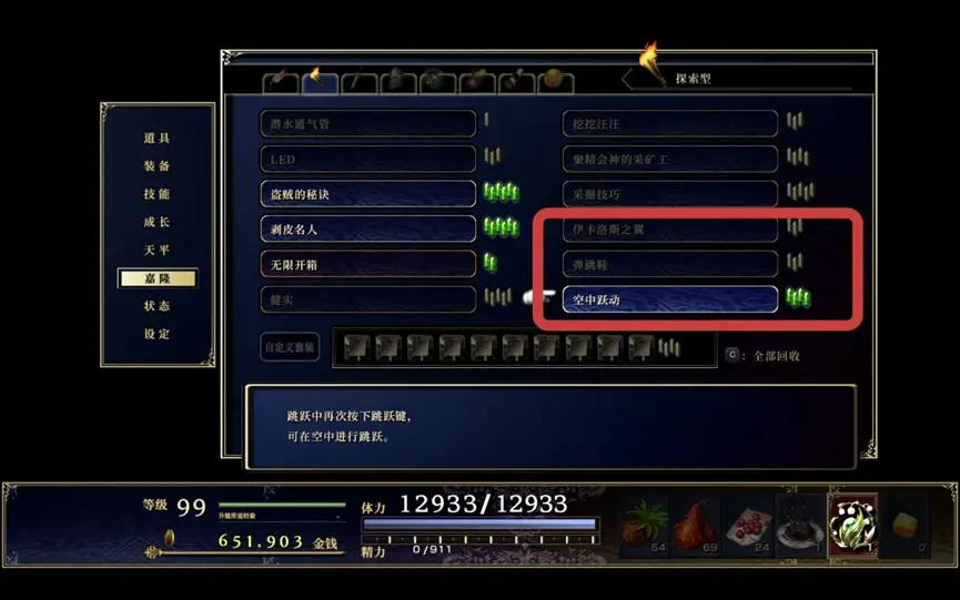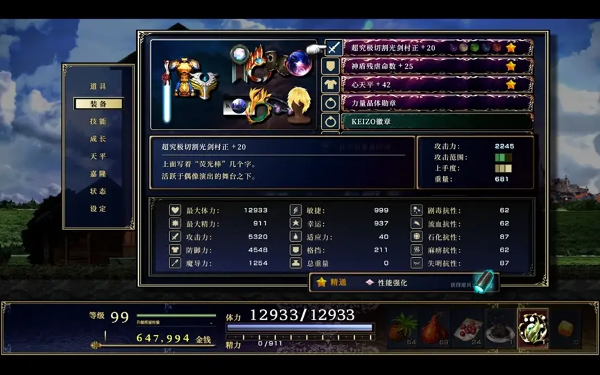 12.每件裝備都有重量,敏捷不夠的話是揮不動的,所以在遊玩過程中優先敏捷,時刻自身的重量保持在0。