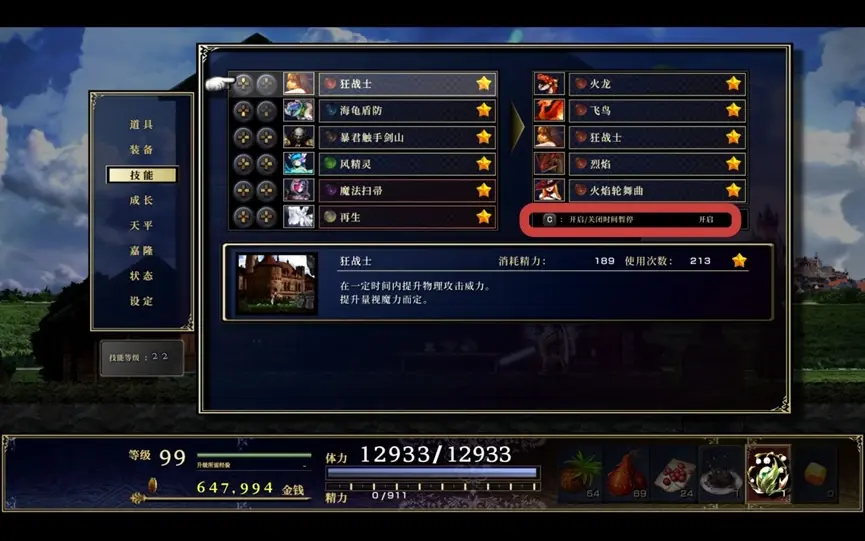 15.使用憑依的時停消失了不要怕,在技能介面按C就行。