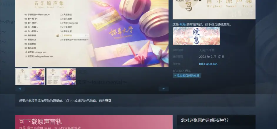 KIDFansClub - 《候鳥》的原聲音樂輯現已正式在steam平臺發售